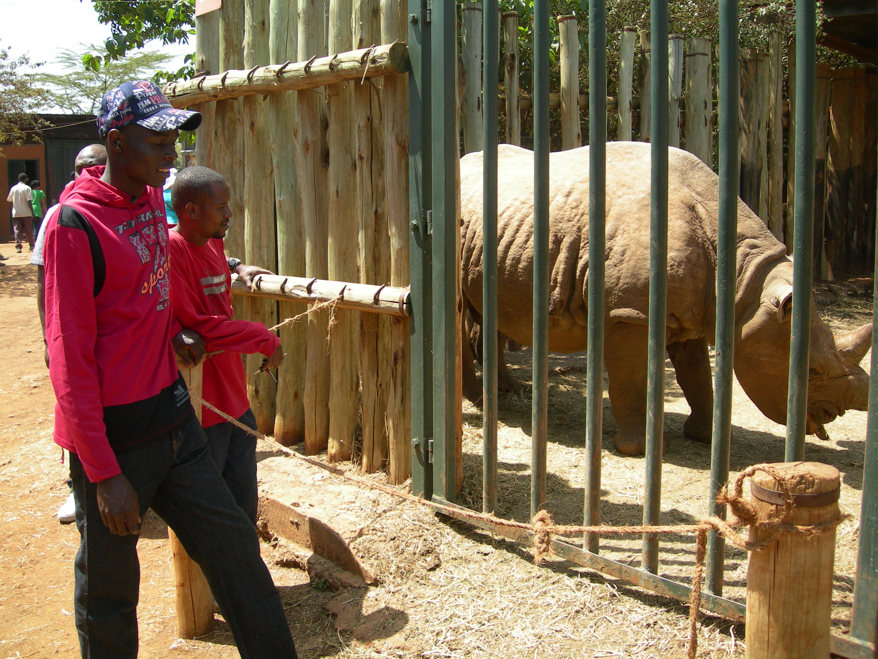 Cestou zpět na parkoviště se ještě zastavujeme u klecí se dvěma nosorožci, kteří si zde léčí různá poranění. Až budou v pořádku, vrátí se i oni do parku. Když jsme odcházeli z prostoru krmení slůňat, ptala se mě jedna nejspíš americká turistka jestli patřím k těm dětem a ukázala na naši skupinu. Když jsem přitakal, ptala se z jaké jsme školy, že prý ještě nikdy neviděla žádnou školní výpravu s tak obrovským nadšením a zájmem.