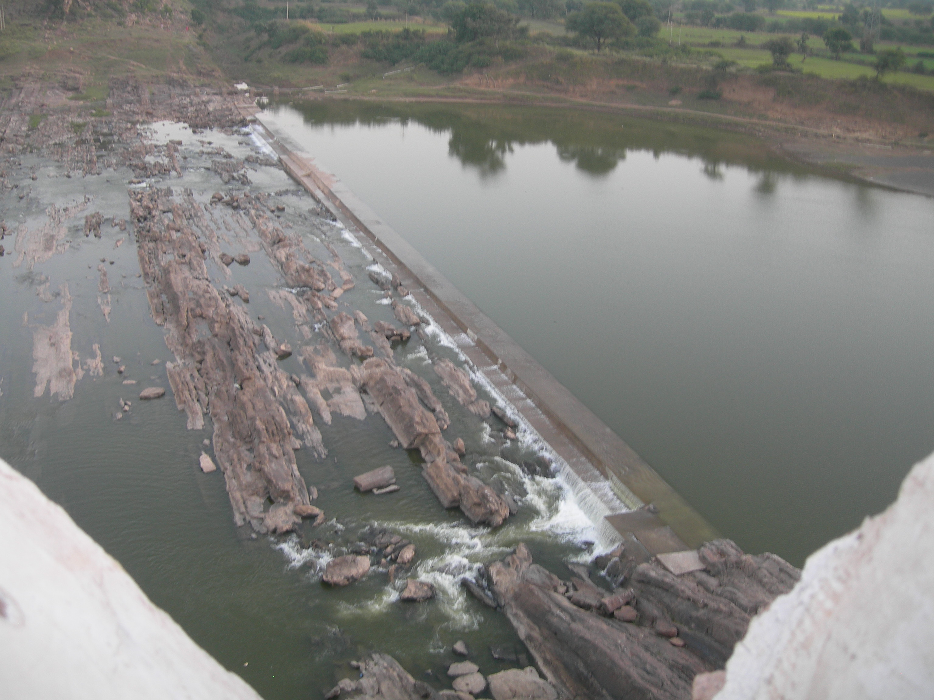Ještě jeden pohled na umělou hráz a přirozený stupeň pod ní a vracíme se zpátky do kempu seismiků v Jhalawaru. Náš klient si tam potřebuje něco vyřídit. Pomalu se stmívá a jediná posádka, která ještě v kempu zůstává, už nejspíš bude z terénu zpátky.