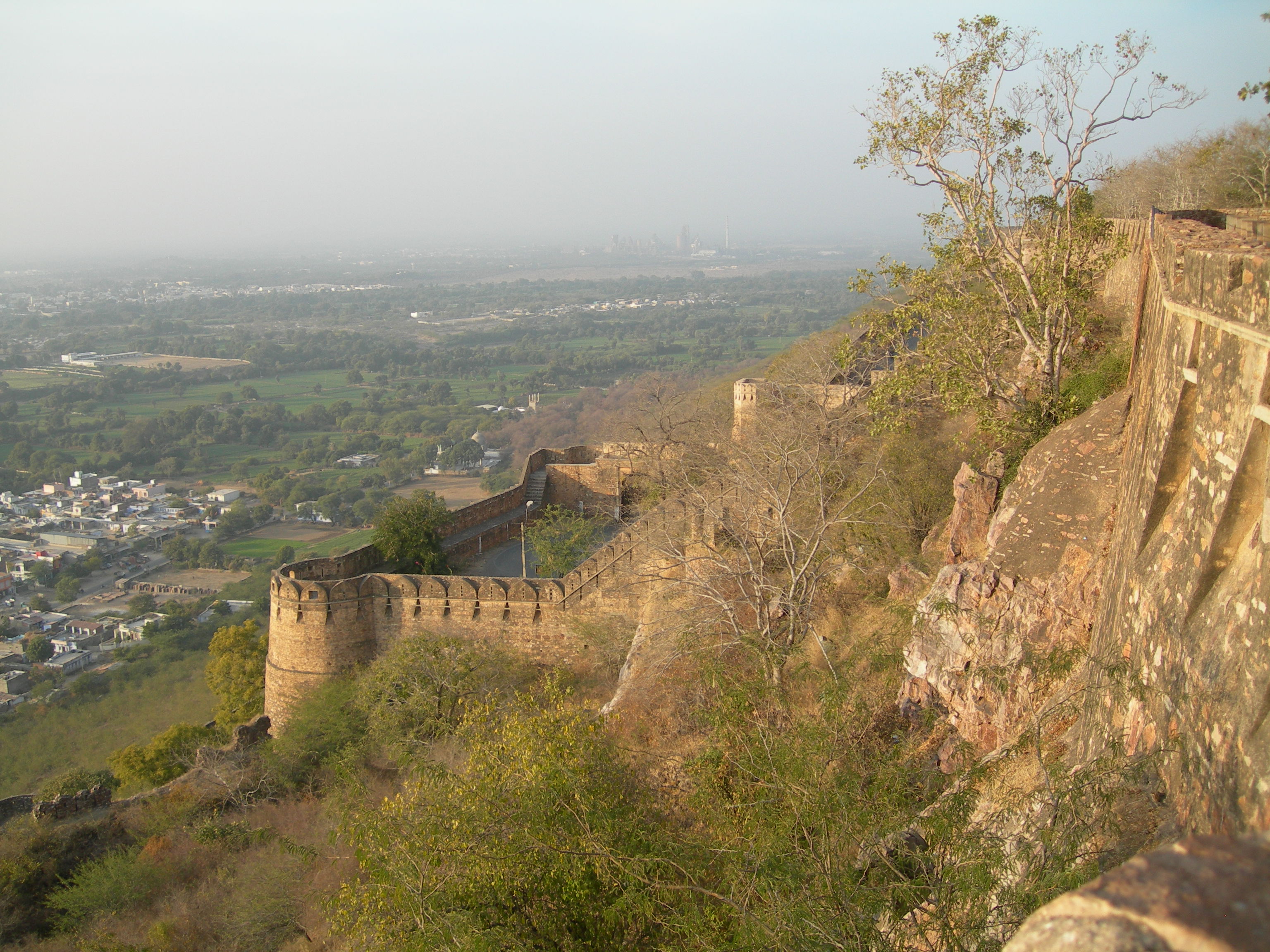Slunce za chvíli zapadne, takže je nejvyšší čas se vrátit. Ale ještě zastavujeme kousek před vstupní branou, abych mohl vyfotit hradby a za nimi v serpentinách klesající přístupovou silnici.