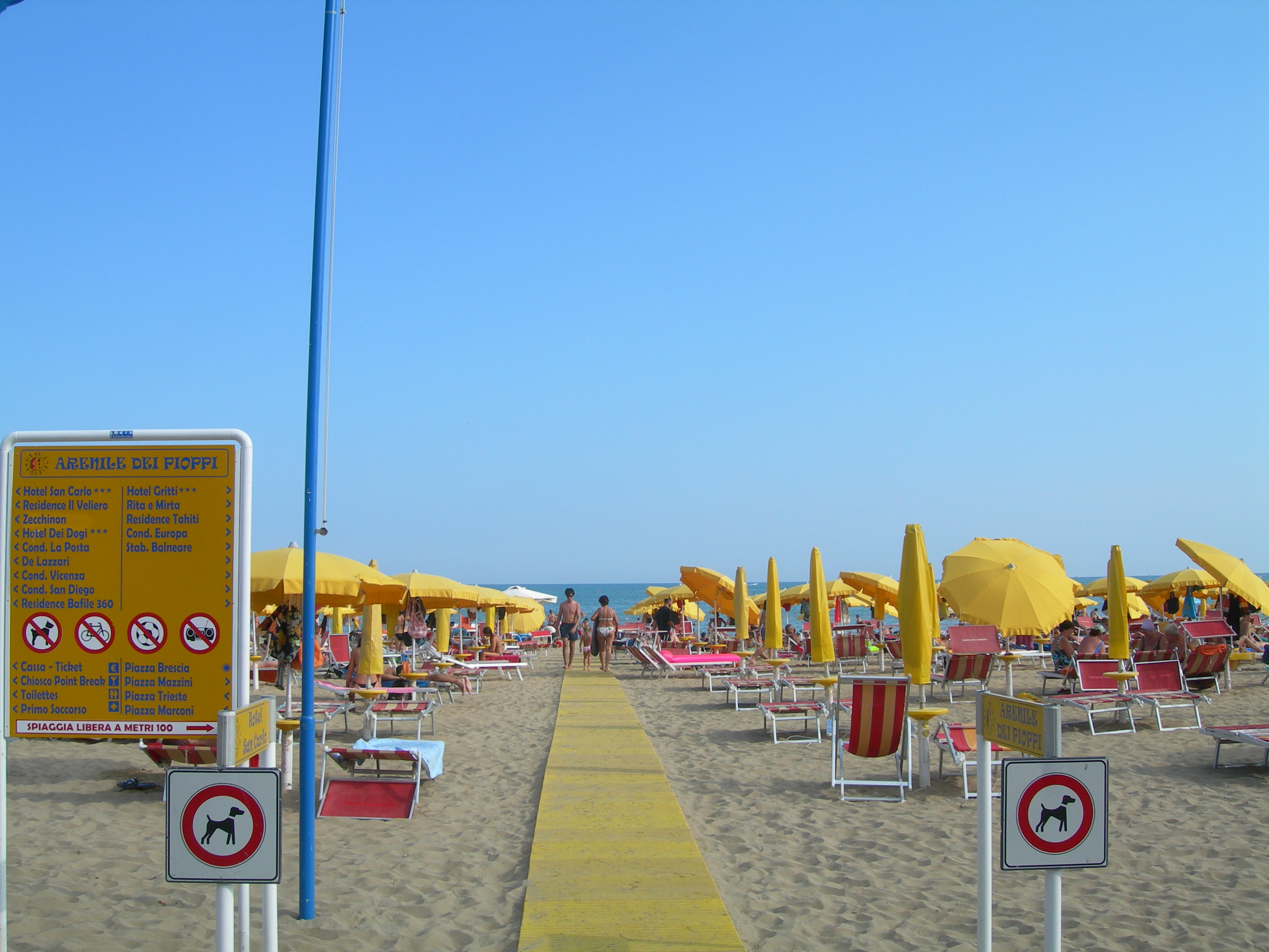 V neděli večer po devíti dnech putování s rovnou tisícovkou ujetých kilometrů v nohách dorážím v letovisku Jesolo k moři. Je uprostřed sezóny a pláže praskají ve švech.